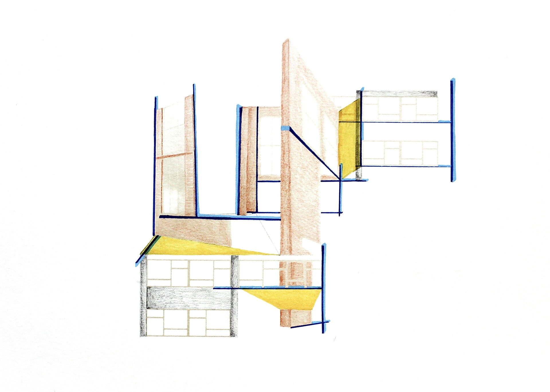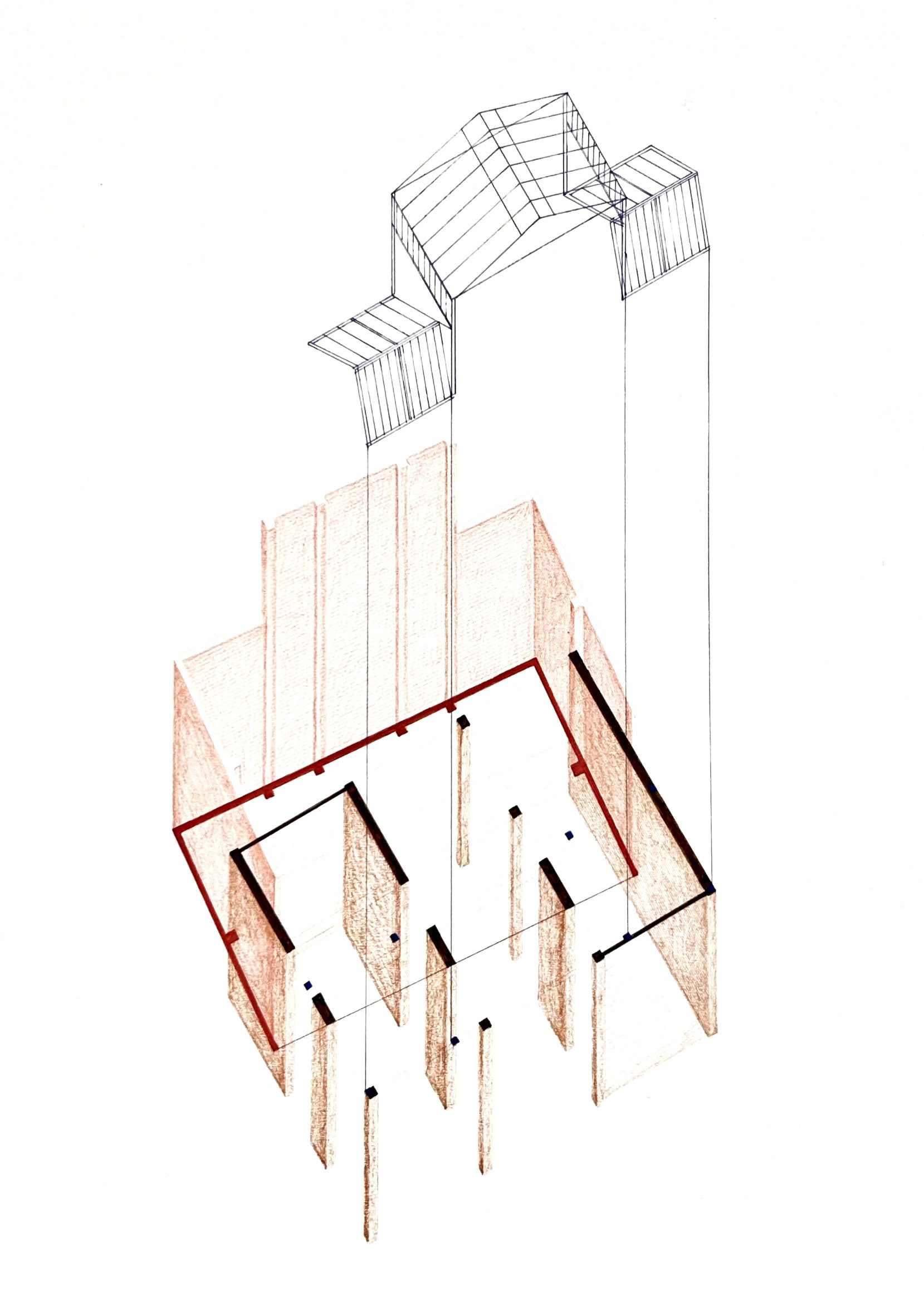 The design trajectory adopts a double perspective: by juxtaposing deconstructivist ideas with the need for heritage care, a new design attitude emerges. Three themes — decay, the architectural promenade, and decontextualisation — guide the research and lay the foundation for a layered spatial intervention.