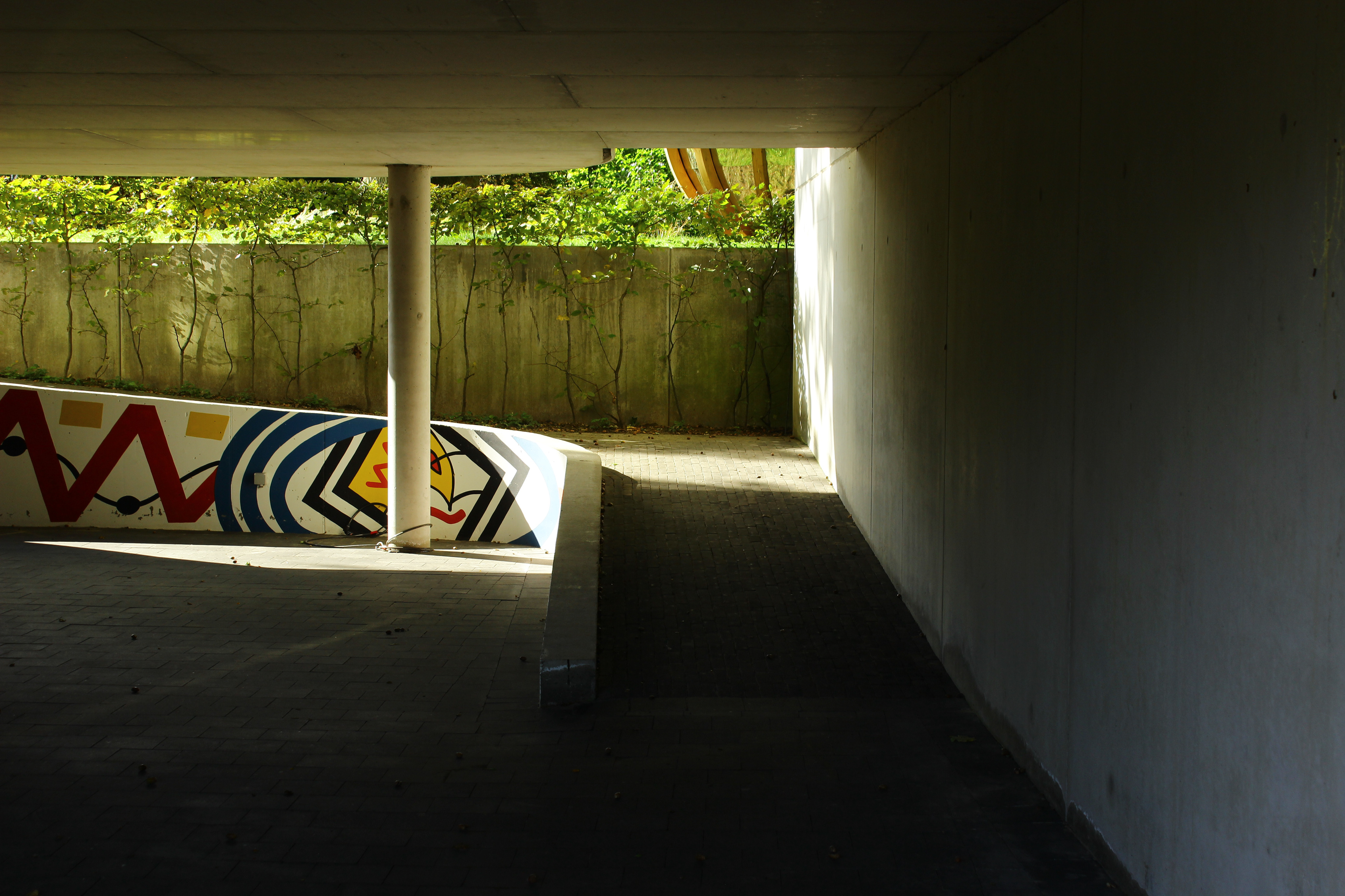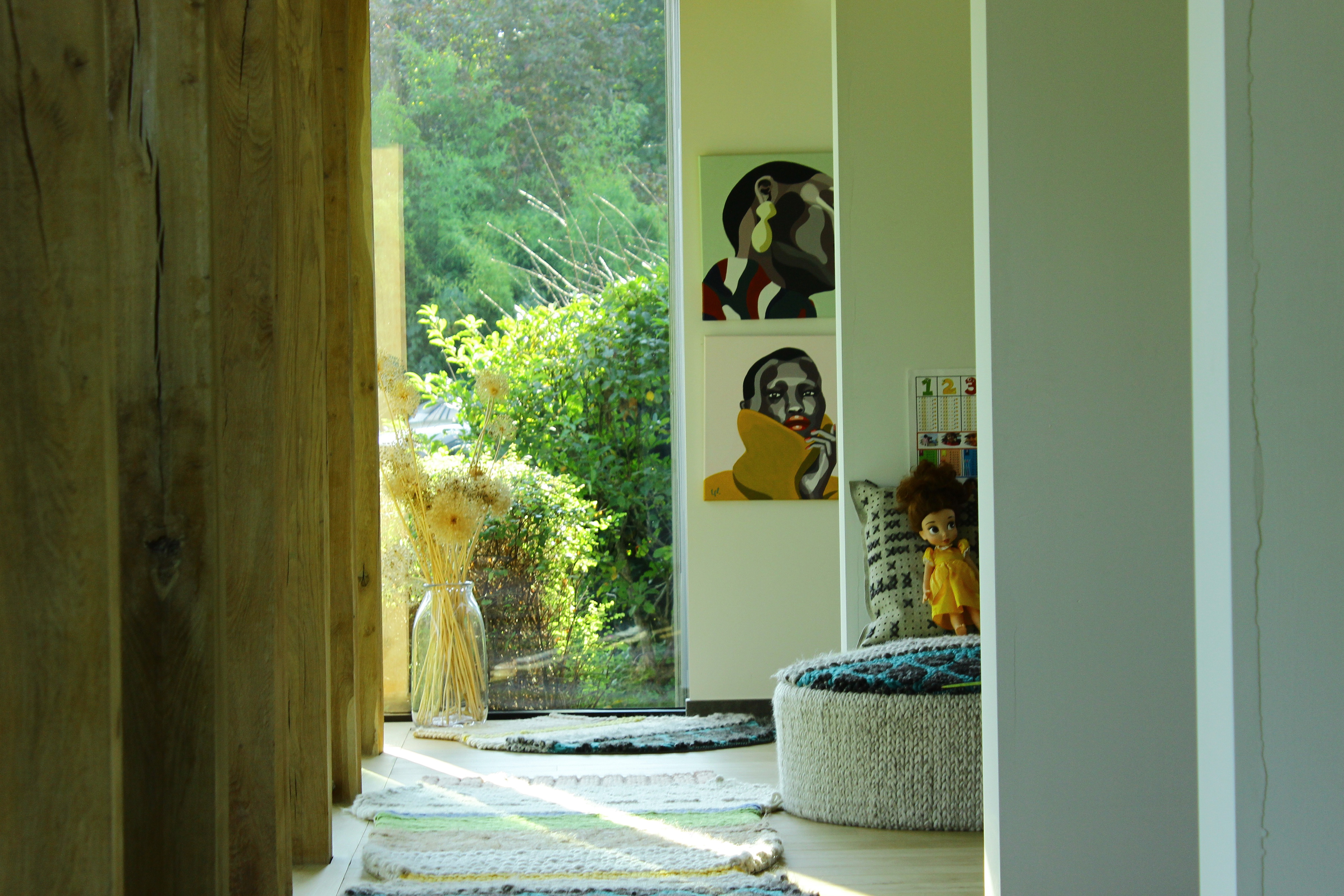 This architectural experience was then translated into abstract forms that detached themselves from their original context. The formal language and colors of the dwelling were preserved and carried into a new environment: a walk through the forest.