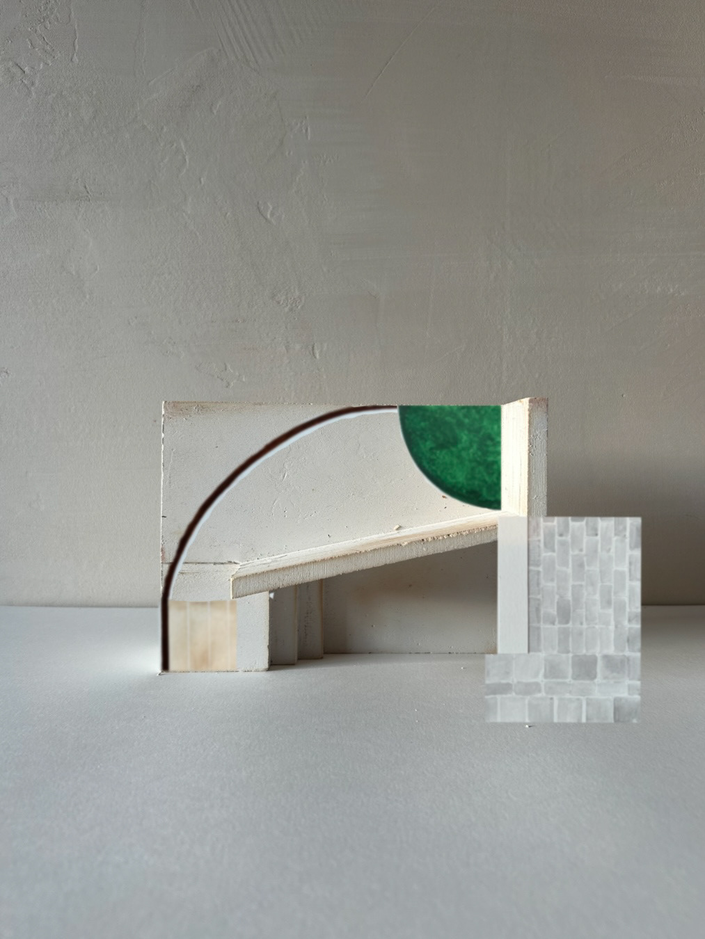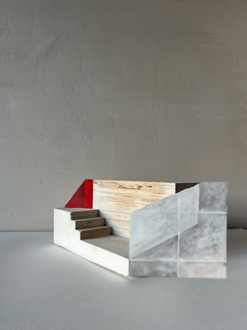 The project begins with the experience of a specific place: a modern, adapted dwelling. During a walk through its spaces, light, color, materiality, and form were observed and recorded through drawings and models.